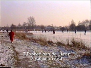 Sfeerbeeld van een mooie winterdag met schaatsende families op de Binnen Liede (3 januari 1993).