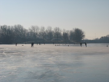 Schaatsen op de Liede, dun ijs. Foto Nel Breed.