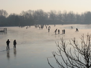 Schaatsen op de Liede, dun ijs. Foto Nel Breed.