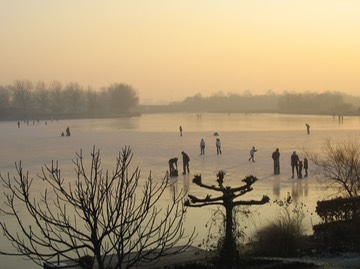 Schaatsen op de Liede, dun ijs. Foto Nel Breed.