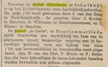 In Zuid Schalkwijk (tot 1963 onderdeel van de gemeente Haarlemmerliede en Spaarnwoude) had men ook een ijsclub: “Christiania” genaamd. Opgericht vermoedelijk 01-02-1991 en heeft vermoedleijk bestaan tot ca.1940.