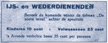 IJsbaan van de oude Zoete Inval. Overgenomen uit het boek ‘De Zoete Inval, de kroon op 75 jaar gastvrijheid, 1930-2005'. Uitgegeven door De Zoete Inval in 2005.