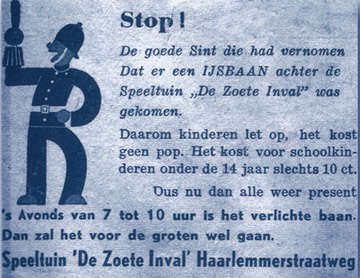IJsbaan van de oude Zoete Inval. Overgenomen uit het boek ‘De Zoete Inval, de kroon op 75 jaar gastvrijheid, 1930-2005'. Uitgegeven door De Zoete Inval in 2005.